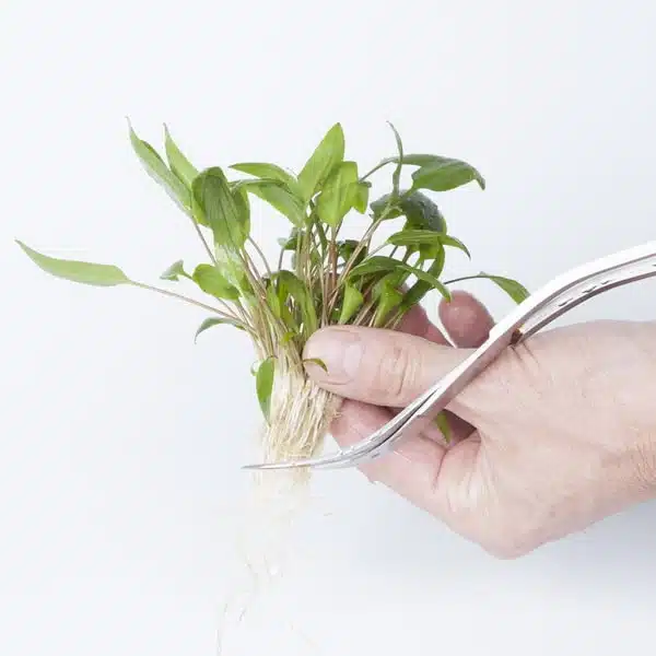Juuria ei tarvitse pahemmin varoa poiston yhteydessä, koska juuria trimmataan seuraavassa vaiheessa akvaarioon istutusta varten.