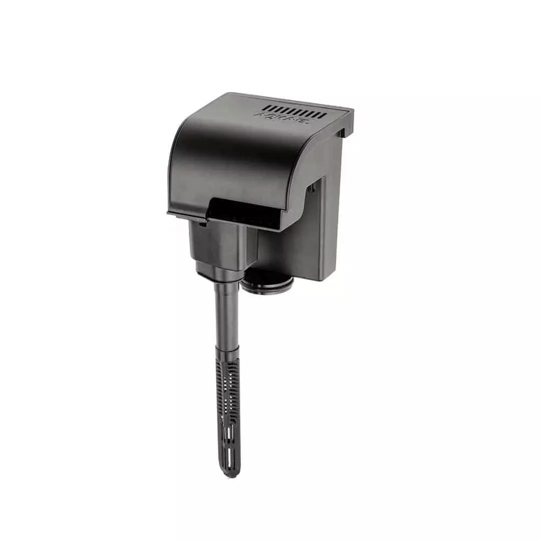Suodattimen moottori on akvaarion puolella, imupään yläosassa, joten suodatin lähtee varmemmin aina käyntiin sammutuksen jälkeen, kun vastaavat ulkolaitasuodattimet jossa moottori on suodatinsäiliön sisällä.