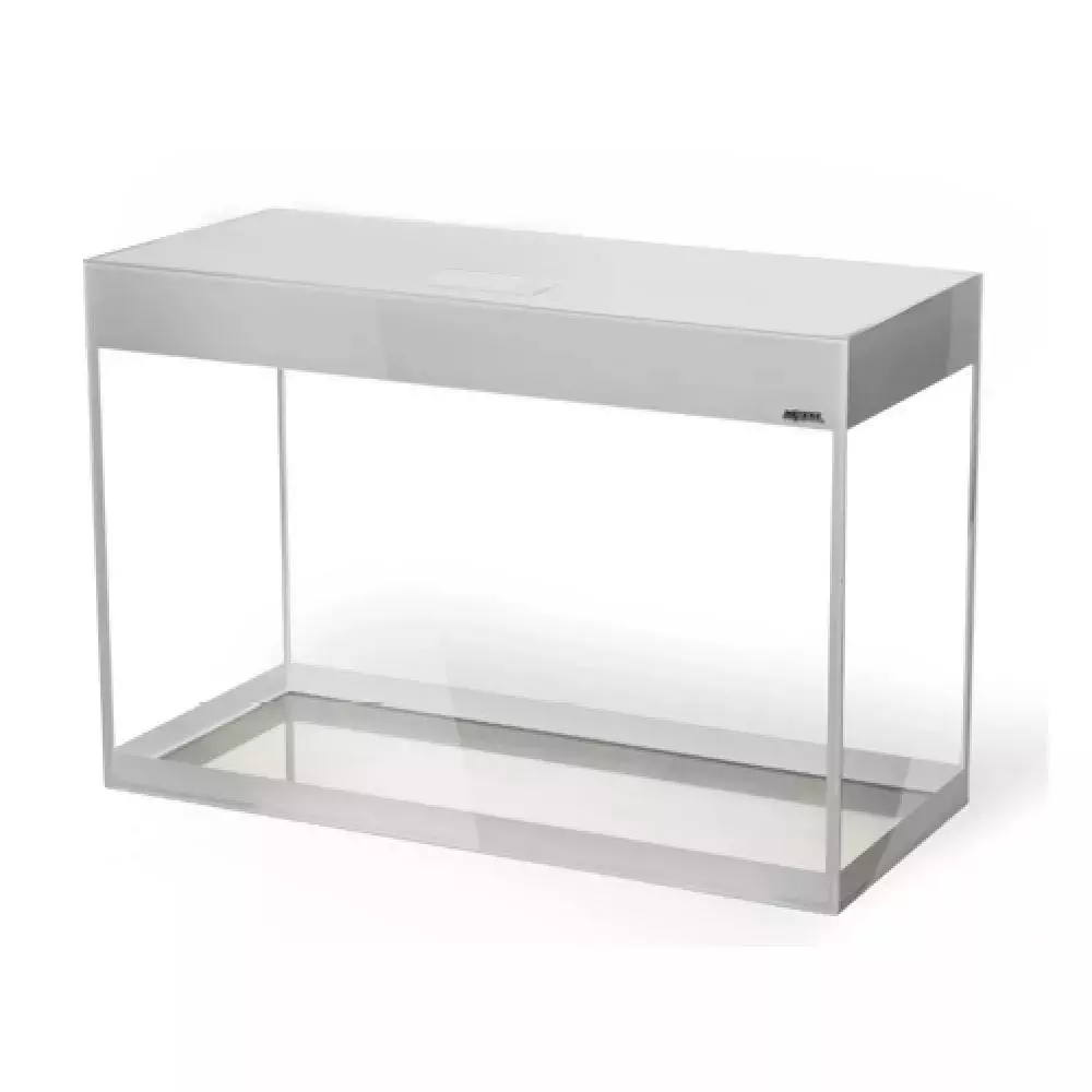 Glossy 120 on hyvin tyylikkään näköinen valkoinen suorakaiteen mallinen akvaario jossa ei ole ulkonevia kehyksiä.
