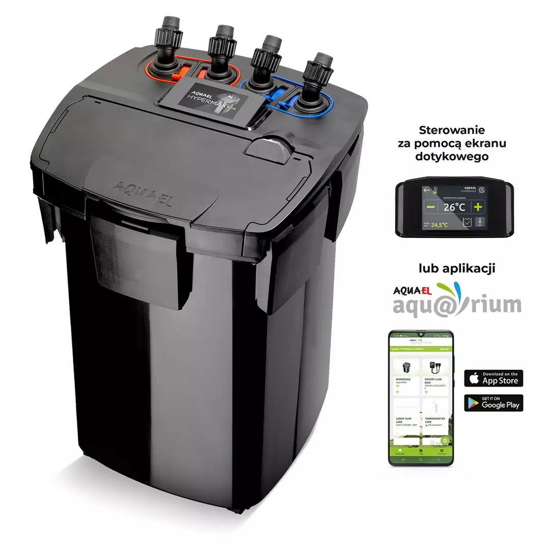 Erittäin tehokas isojen akvaarioiden ulkosuodatin kahdella imulla ja puhalluksella. Suodatin on puhelimella ohjattavissa virtauksen ja lämpötilan osalta Suodattimessa on myös 300w lämmitin sisäänrakennettuna. Suodattimessa on helposti puhdistettava esisuodatin. 4500l/h