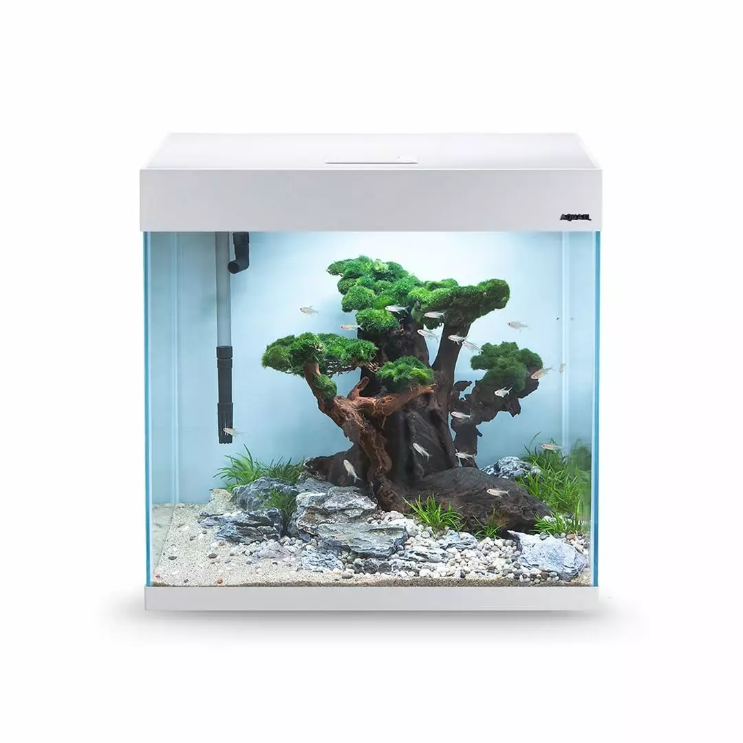 Optiset 130 on hyvin tyylikkään näköinen valkoinen akvaario.