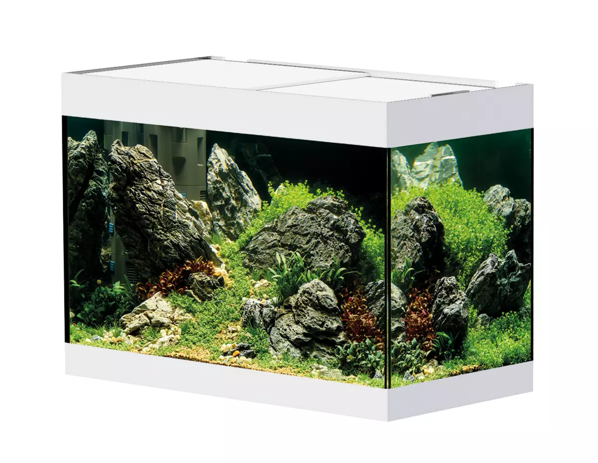 115Litraa 70x36x50cm Floaty lasinen akvaario paketti Väri valkoinen. Paketissa sisäsuodatin ja lämmitin.