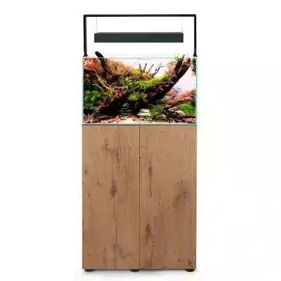 Upea Aquascaping akvaariopaketti jalustalla. 65 litraa Valmistettu OptiWhite lasista Valaisimen väri: Musta Kaapisto on kooltaan 60 x 30 x 80 cm Väri: Metsä / musta Jalustassa on kaksi kaappia