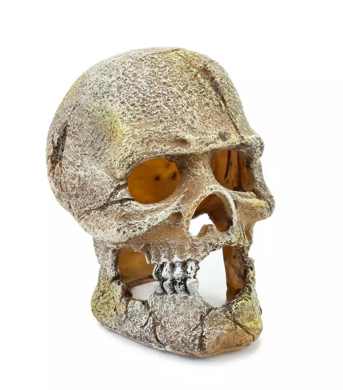 Pääkallo koriste jonka sisälle kalat pääsevät uimaan. 17cm Myrkytön ja akvaariokäyttöön tarkoitettu.