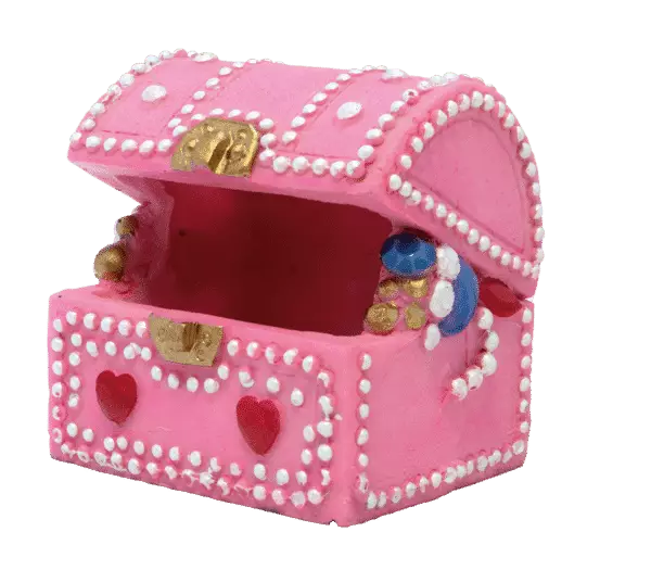 Vaaleanpunainen aarrearkku -koriste akvaarioon