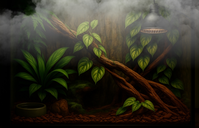 Sademetsäterraario jäljittelee trooppisten alueiden reheviä ja kostean lämpimiä elinympäristöjä. Se on terraariotyyppi, jossa yhdistyvät korkea ilmankosteus, lämpimät olosuhteet ja tiheä kasvillisuus. Luonnossa vastaavia elinympäristöjä löytyy esimerkiksi Etelä-Amerikan, Kaakkois-Aasian ja Afrikan sademetsävyöhykkeiltä. Näissä paikoissa elää lajeja, jotka ovat sopeutuneet elämään kosteassa, varjoisassa ja suojaisassa ympäristössä. Sademetsäterraario tarjoaa mahdollisuuden luoda pieni pala tätä maailmaa kotiin – elävä ekosysteemi, jossa kasvit ja eläimet viihtyvät rinnakkain.