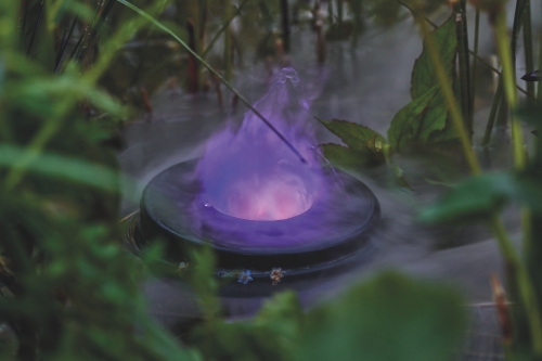 Monissa malleissa käytetään värillisiä RGB-LED-valoja, jotka valaisevat sumua eri sävyillä. Valo hajautuu sumun läpi ja tekee vesiaiheesta iltahämärässä hyvin näyttävän.