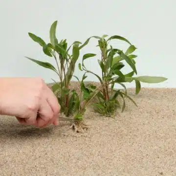 Paina kasvit pohjamateriaaliin käsin tai pinsettien avulla siten että juuret ovat peittyneet pohjamateriaaliin mutta lehtien kiinnitys kohta jää pohjamateriaalin päälle.