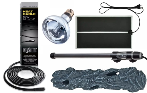 Useilla lajeilla lämpöä kaivataan myös kuivalle alueelle. Erityisesti matelijat kaipaavat terraarioonsa eri lämpötiloja, jotta ne voivat ulkoisen lämmönlähteen mukaan säädellä kehonsa ruumiinlämpöä. Lämmittelyalueen lämmönlähteenä matelijoiden lämpölamppu toimii hyvin.