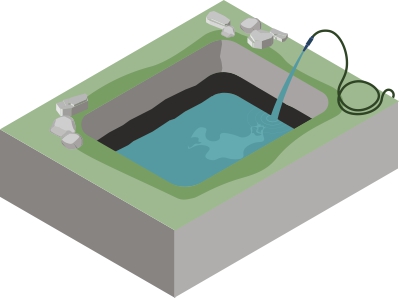 Kun lammen pohja on valmis, voit lisätä somisteita ja tekniikkaa