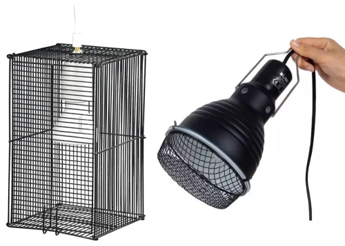 Huomioitavaa: Lamppu kuumenee paljon – käytä vain keraamista lampunpidintä ja suojaa polttimo verkolla, ettei eläin pääse koskettamaan sitä.