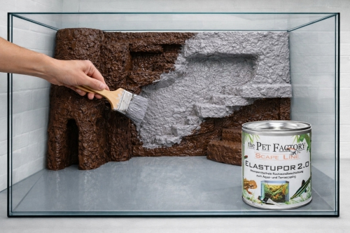 Varsinainen pinnoitus tehdään Elastupor 2.0 -pinnoitemassalla. Se on liuotteeton, hyvin tarttuva ja kuivuttuaan kova ja vedenpitävä. Elastupor sulkee uretaani- ja styrox-rakenteet kokonaan ja tekee taustasta terraariokäyttöön sopivan.