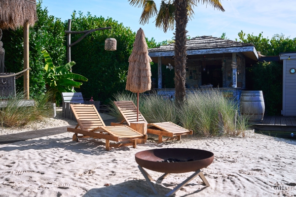 Hiekkarannan ylin osa on hyvä rajata muusta piha-alueesta. Rajauksen voi tehdä esimerkiksi kivetyksellä tai edellä mainitulla reunarakenteella. Tämä estää sadeveden tuoman kuran valumisen hiekalle. Hyvin rakennettu hiekkaranta on erittäin miellyttävä käyttää ja tekee uimalammesta luonnollisen näköisen osan pihaa.