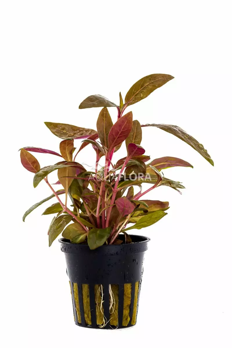 Yhdistettynä vihreisiin kasveihin sen punertava lehdistö erottuu näyttävästi ja tekee akvaariosta eläväisen.