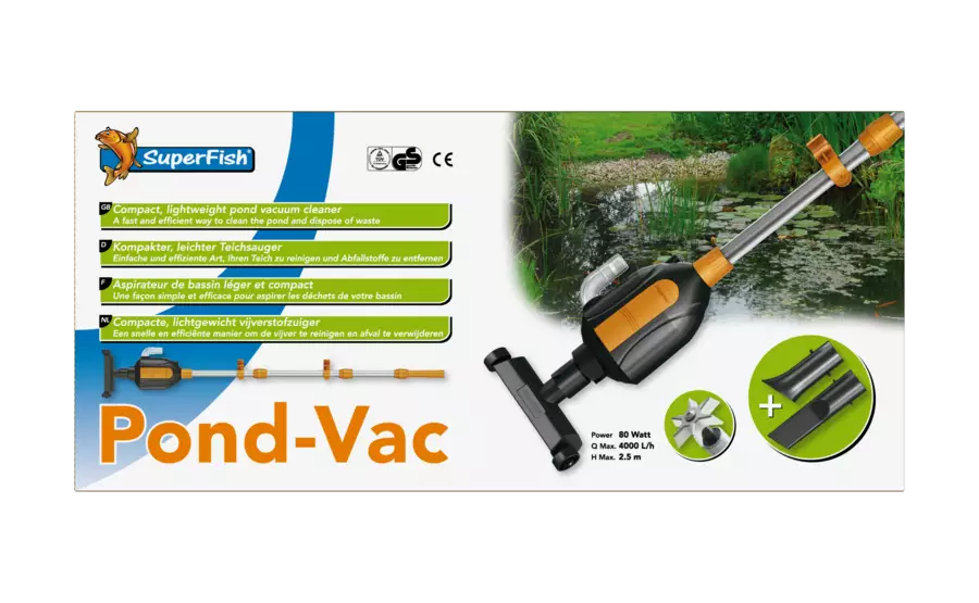 Lampi imurilla saat puhdistettua lammen pohjan kaikesta sinne kertyneestä liasta. Imurin varsi on 1,8m pitkä ja imurissa on 10 metriä pitkä sähköjohto. Laitteen mukana tulee myös 32 mm letkua 5 metrin pätkä, jolla imurin imemä roska poistetaan lammesta.
