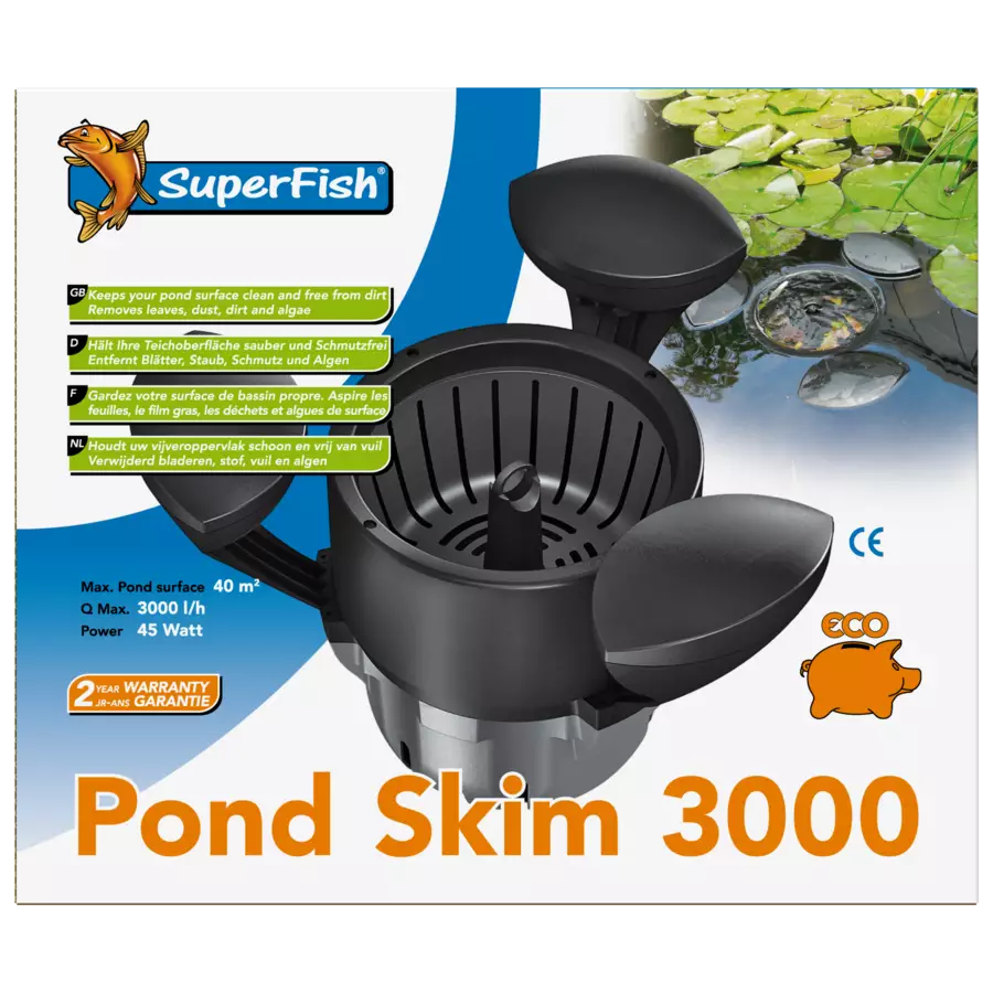 Skimmeri kelluu vedenpinnalla ja imee jatkuvasti vettä sisäänsä vedenpinnalta ja puhaltaa sen alleen. Täten vedenpinnalla kelluvat roskat päätyvät laitteen sisälle ja ne on helppo poistaa lammesta.