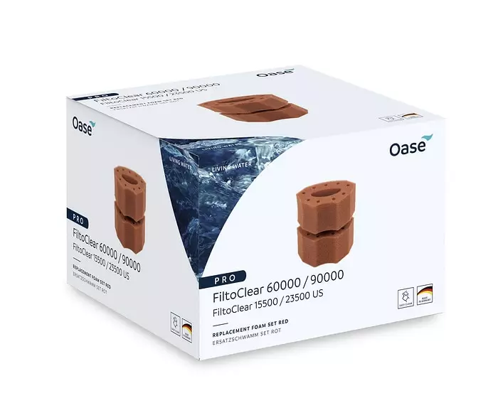 Punainen suodatinpatruunasetti on suunniteltu FiltoClear 60000 ja FiltoClear 90000 painesuodattimiin hienomekaaniseen suodatukseen. 30 ppi:n huokostiheys soveltuu pienten ja hienojakoisten epäpuhtauksien tehokkaaseen poistoon vedestä.