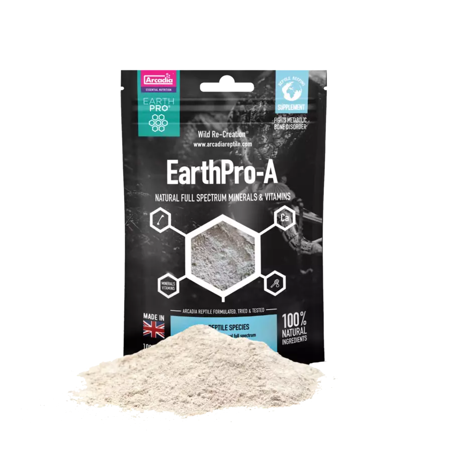 EarthPro-A on mineraali- ja vitamiinijauhe, joka on suunniteltu säännölliseen käyttöön osana terraarioeläinten ruokintaa. Koostumuksen ydin on luonnosta louhittu “full-spectrum” mineraalisavi, jota täydennetään kalsiumilla, mehiläispölyllä, B-vitamiineilla, aminohapoilla sekä karotenoidirikkailla kasvipohjaisilla ainesosilla.