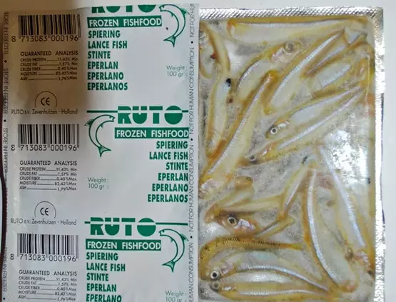 Kokonaisia kaloja 100g pakkauksessa - soveltuu suurille petokaloille, kuten isot kirjoahvenet, petomaiset monnit, rauskut yms., sekä kalaa syöville käärmeille ja kilpikonnille