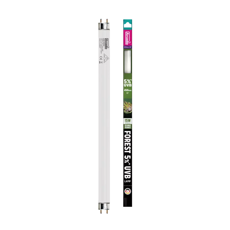 Arcadia Forest T8 loisteputki 5% sademetsän asukkaille. Tuottaa optimaalisen määrän UVB säteilyä optimaaliseen kalsiumin aineenvaihduntaan