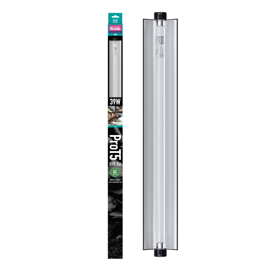 Arcadia ProT5 UVB Kit Forest 6% 39W on T5 UVB -valaisinsarja terraarioihin, jossa mukana tulee juuri tähän malliin kuuluva D3 Forest 6% T5 UVB -putki sekä valaisinrunko. Kokonaisuus on tarkoitettu erityisesti lajeille ja terraarioihin, joissa tarvitaan maltillisempaa UVB tasoa kuin Desert- tai Dragon-versioissa, mutta halutaan silti T5-tekniikan tasainen ja laajalle leviävä UV-rikas valo.