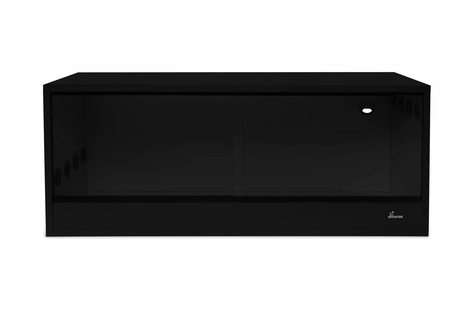 Terraariossa on kaksi liukuovea joten terraarion hoitaminen on helppoa, voit liu’uttaa jomman kumman lasin toisen päälle hoitamisen ajaksi tai tarvittaessa vaikka nostaa ne kokonaan pois paikoiltaan.