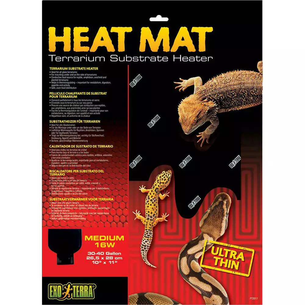 Terraarion ulkopuolelle asetettava lämpömatto. Matto on teholtaan 16w ja kooltaan 26,5x28cm