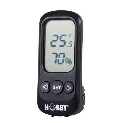 Mittarin on tarkka ja se näyttää lämpötilan terraariossa +/-0,5° C tarkkuudella ja kosteuden se mittaa +/-3 % tarkkuudella.