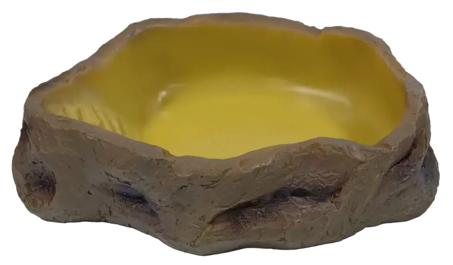 Luonnollisen näköinen, painava ruokinta- tai vesikuppi terraarioon.