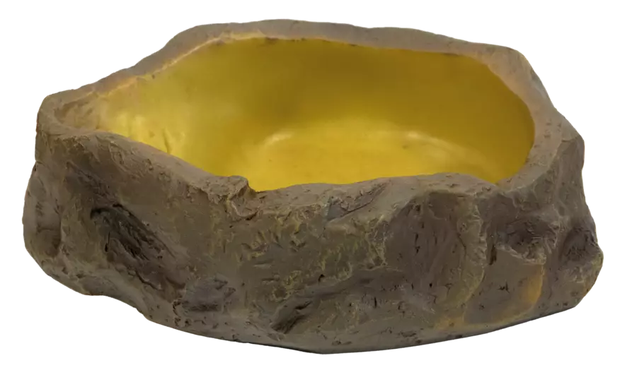 Luonnollisen näköinen, painava ruokinta- tai vesikuppi terraarioon.